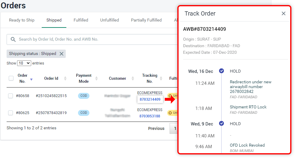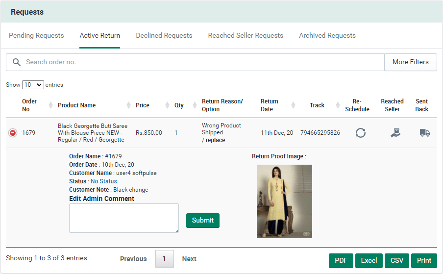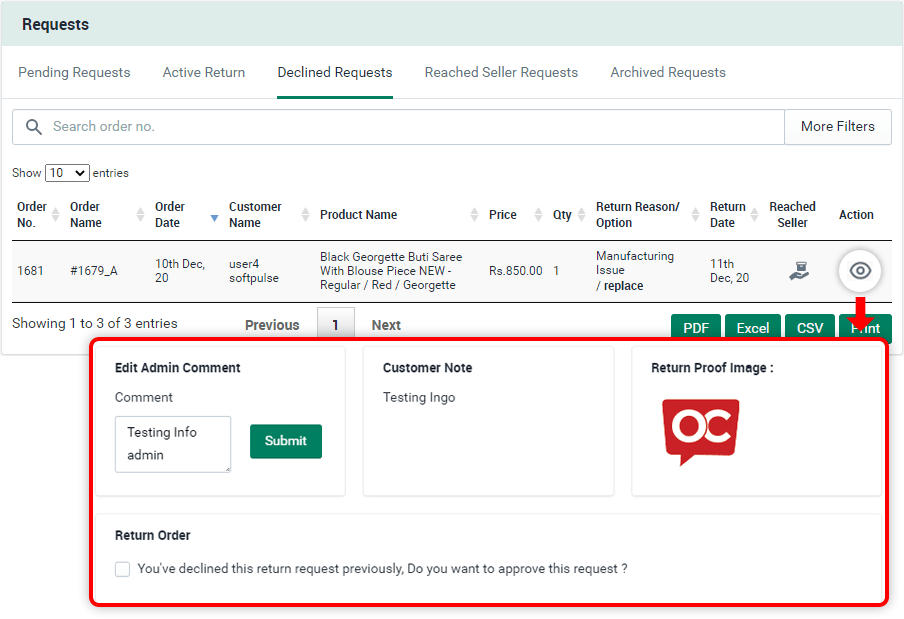 Get the declined order list here. You can move order details to reach the seller and send it back. Also edit customer notes.