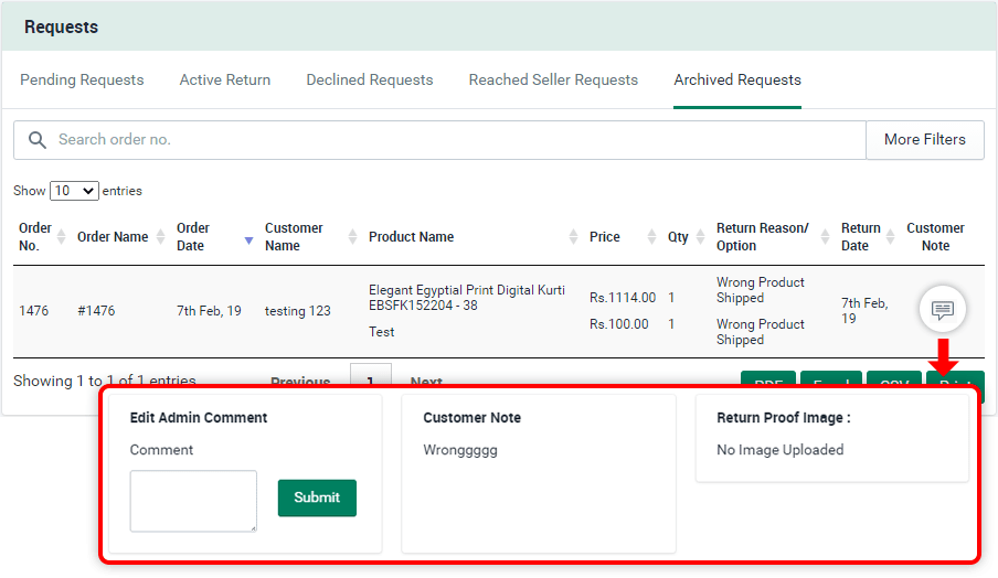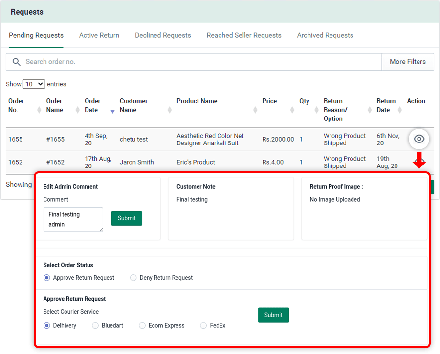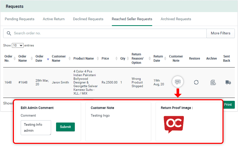 Get the declined order list here.You can order your product to reach the seller and send it back. Also edit customer notes.