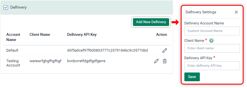 Step 2 : Edit Delhivery API Key and and Client Name (Account name for your referance)