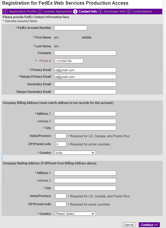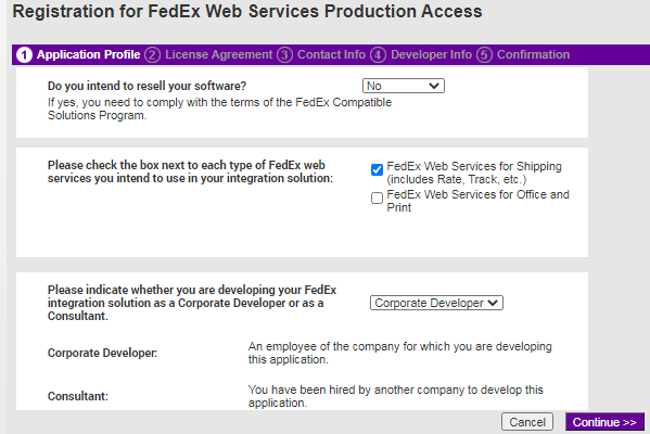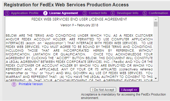 Step 6 : Fill out the Registration for FedEx Web Services Production Access form.