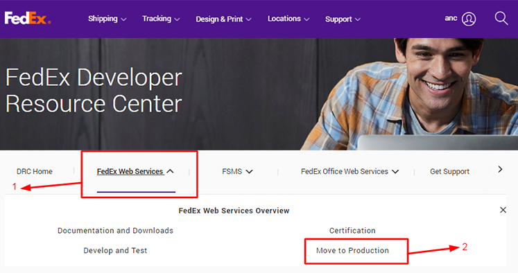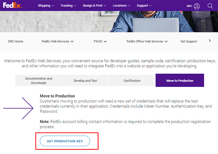 Step 2 : Click on FedEx Web Services section and Move to Production.