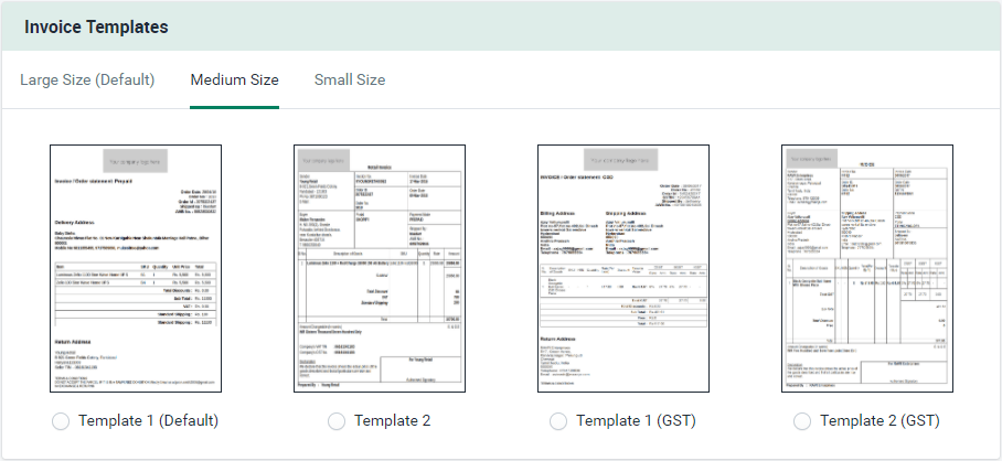 Choose Invoice templates with GST or without GST with different types of size which is suitable for your store.