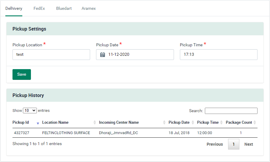 Step 2 : Open pickup settings from the sidebar of the app admin.