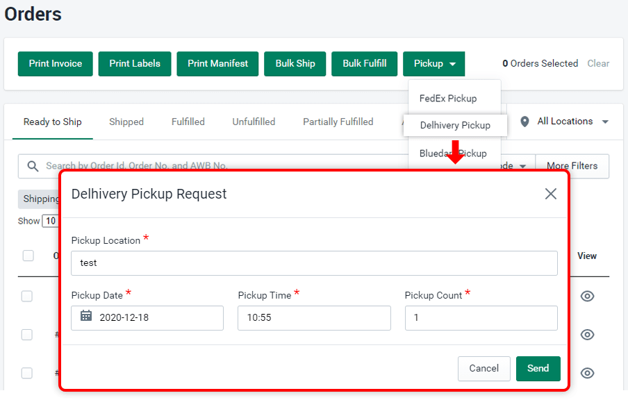 Approve : Click on action button, it will give you the option to choose logistics as per your chosen plan, Select courier service and submit.